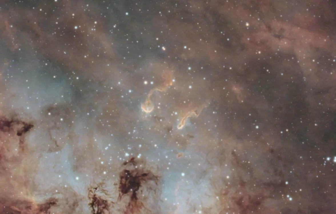 Nestled in the constellation Auriga, the IC 410 nebula houses two clouds of gas and dust shaped like tadpoles.
